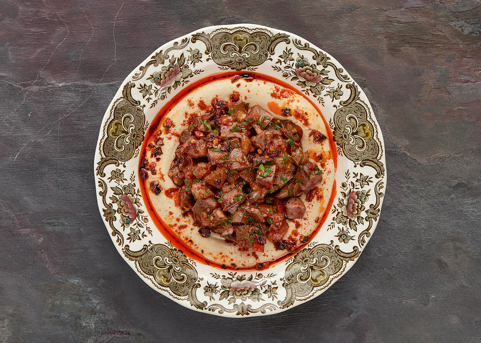 13-го мая в мире празднуют Международный День Хумуса. Поэтому в 2016 году мы решили устроить в «Любимом Дяде» фестиваль хумуса. Хумус с рапанами, хумус с халуми и острыми перцами, и даже хумус с креветками в сладком чили, который до сих пор звездит в «ЖЗЛ». Появился на фестивале и хумус с индюшиными сердцами. Когда мы начали подбирать продукты в пару к хумусу, я понял, что никогда до того момента не пробовал индюшиные сердца. Я ел баранье сердце, ел телячье, сотни раз ел куриные сердечки, но вот индюшиные мне пробовать не доводилось. А это, как оказалось, прекрасный продукт, с которым приятно работать так же, как с хорошим стейком. К тому же в это время у нас в меню было блюдо из тушеного бедра индейки, и использование других частей птицы абсолютно совпадало с моей философией потребления.