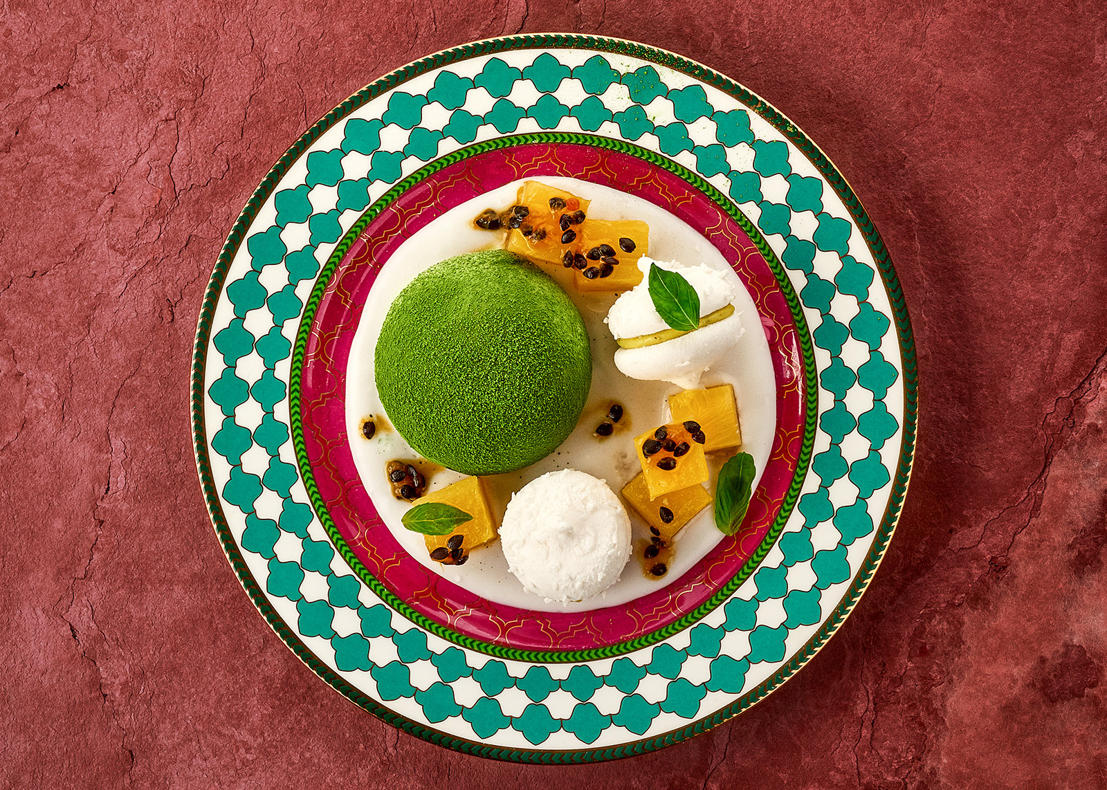 У нас был ягодный мочи — с ягодным муссом, земляникой, клубнично-черничным кремом и желе из клубничного сока с голубикой. Была версия снежного мочи, который был посвящен рождественскому чаю: сам мочи был с муссом из белого шоколада с саусепом, со сливочным кремом со вкусом черного чая с бергамотом и мандариновыми сосочками с матча. А украшало это все имбирное печенье в виде человечка, который сидел на маленьком белом «сугробе» мочи. А когда мы вернулись из зимнего путешествия в Таиланд, у нас появился МиМиМиМочи: абсолютно сумасшедший по вкусу — с матчей, ананасовым желе с тайским чили Bird Eye. Эти мочи мы подавали на кокосовом креме с каффир лаймом, рядом были сосочки, соединенные ганашем из белого шоколада с острым зеленым карри и подавалось все это с желейными мишками с панданом, кокосом и манго. Это было очень необычно и до сих пор мне кажется, что это один из самых сложных вкусов, которые мы создали вместе с Олей.